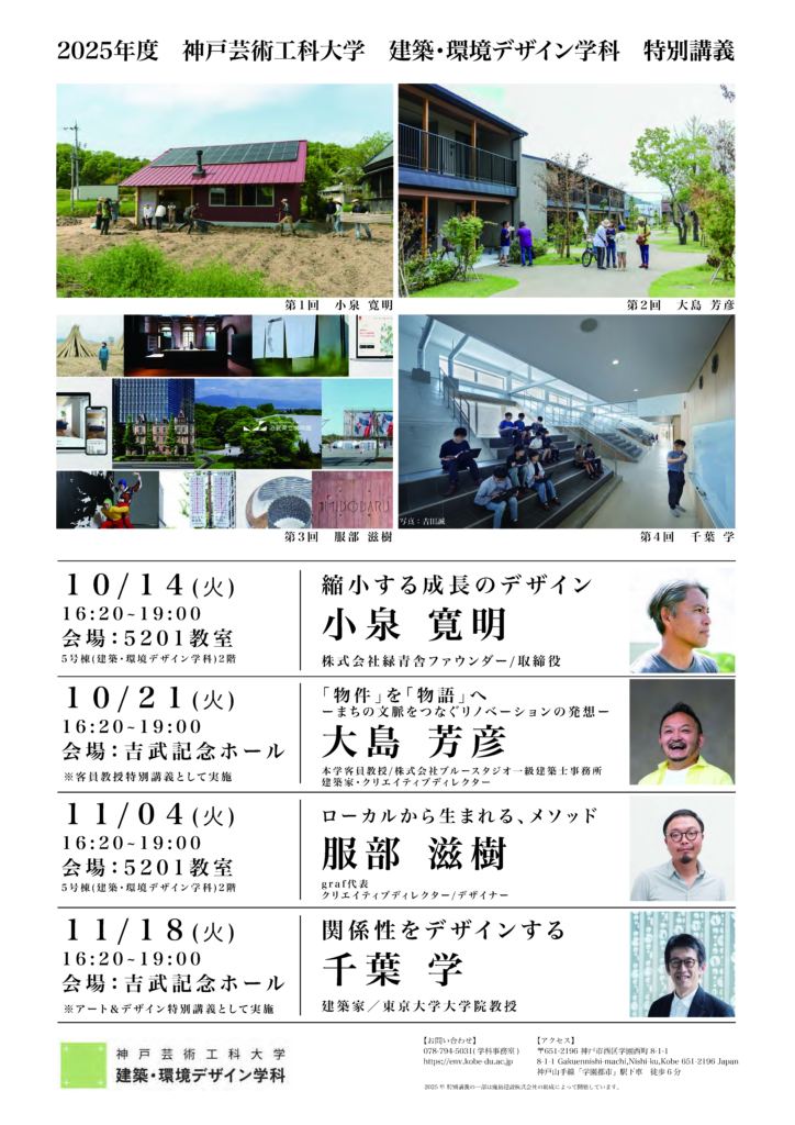 今年度も、建築・環境デザインの幅広い領域をめぐり、それぞれの最先端で活躍を続ける方々をお招きして、特別講義を開催いたします。